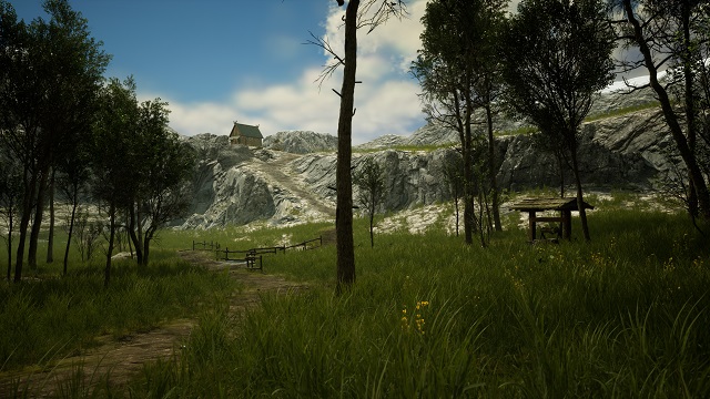 Foliage, including grass, trees, bushes, and rocks, was similarly first procedurally generated and then further adjusted by hand.