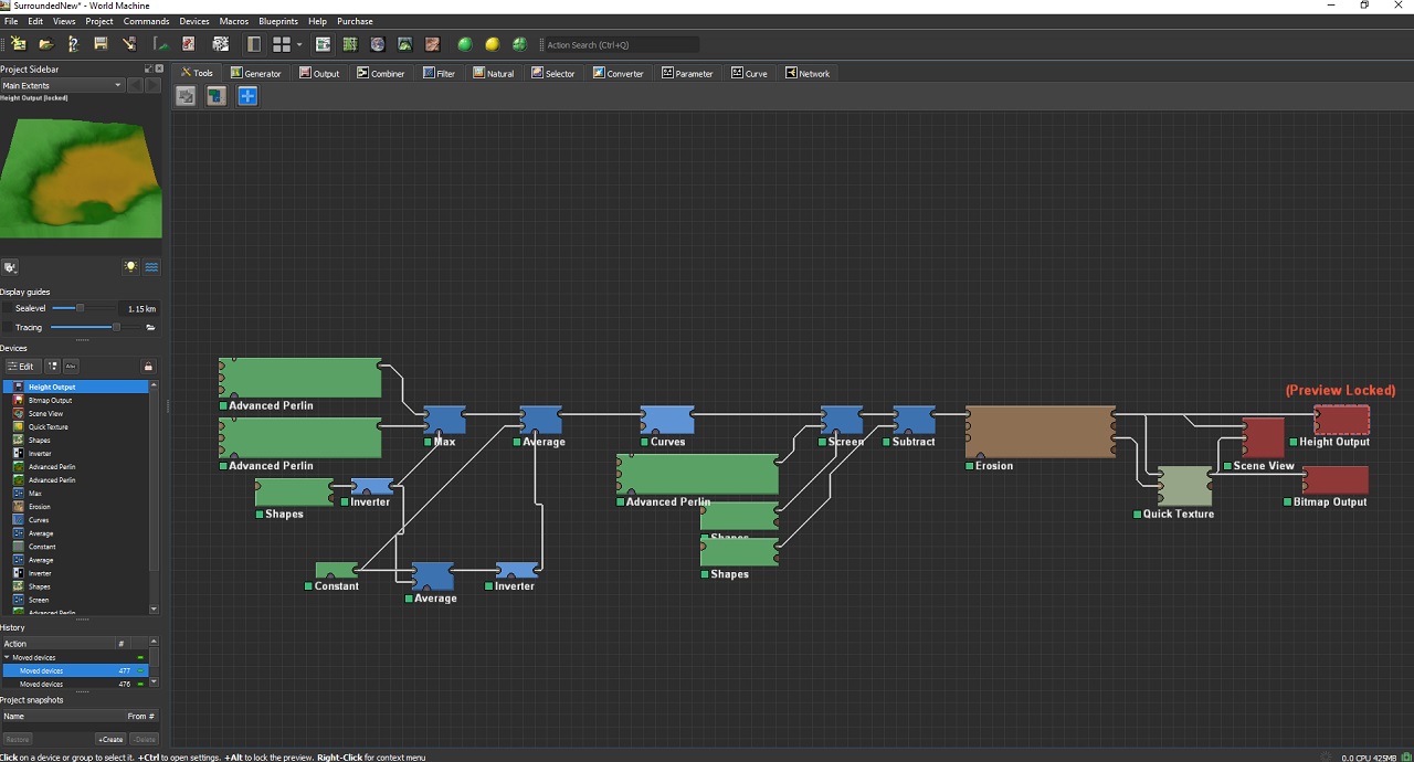 Instead of hand-crafting the whole terrain, I used World Machine to shape my environment at a large scale. I could then export a height map, which I used as a landscape in Unreal Engine. This process was repeated multiple times until I was happy with the result.