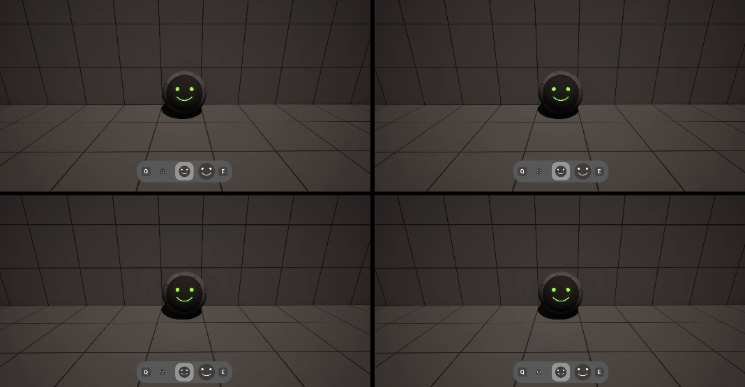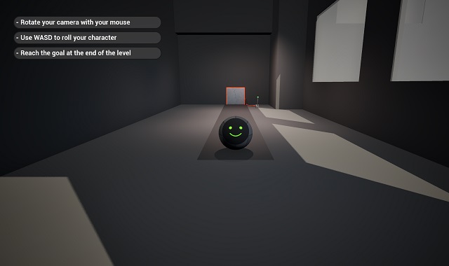 Since I focused on the game's mechanics, I decided to keep the player model simple: it is a rolling sphere with a floating face, which serves as a UI element and gives the main character a human touch.