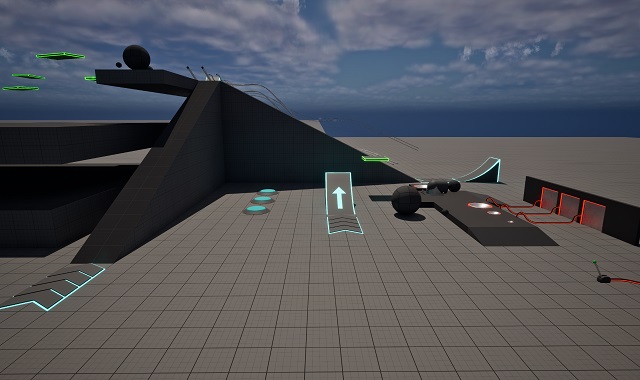 While some obstacles focused on movement and platforming, like jump pads, rails, speed boost fields, and ramps, other obstacles were there for level design, like levers, pressure plates, cables, pushable balls, and doors that open up when powered.
